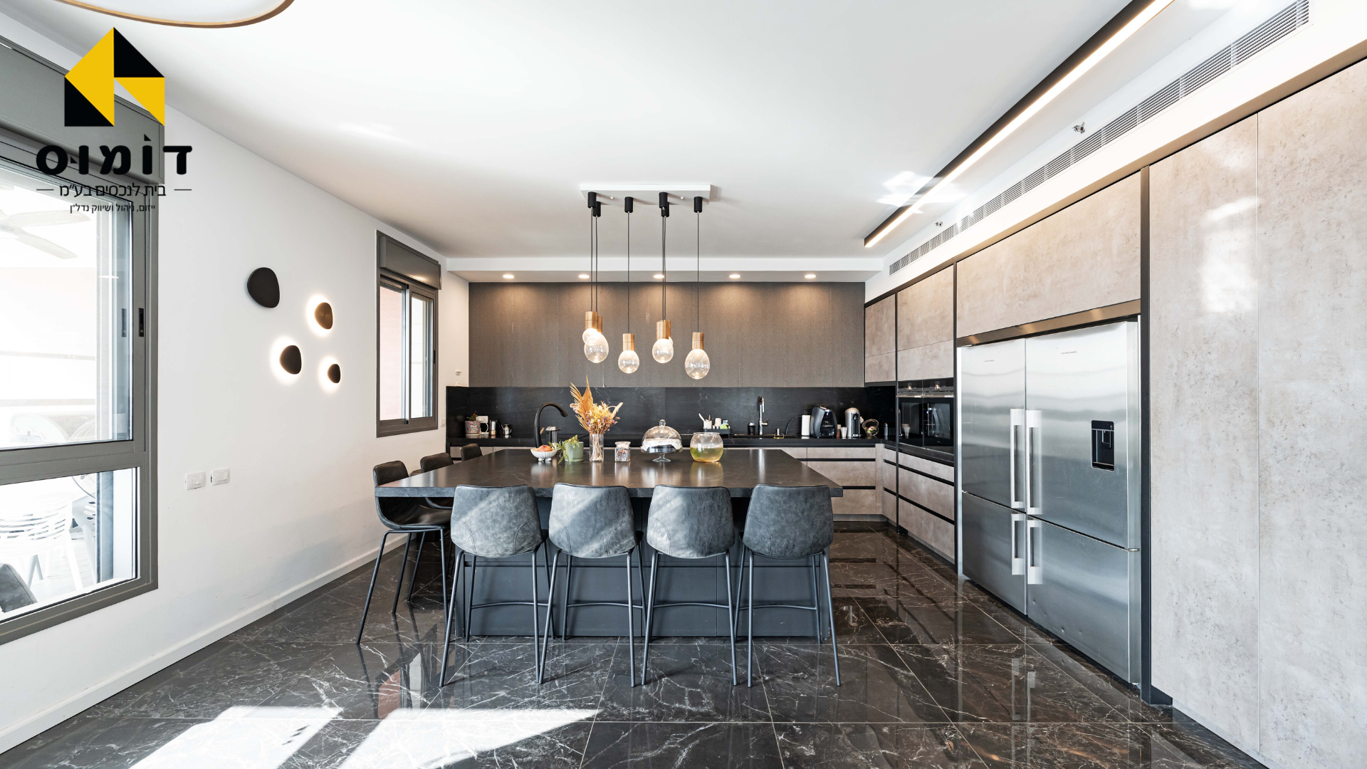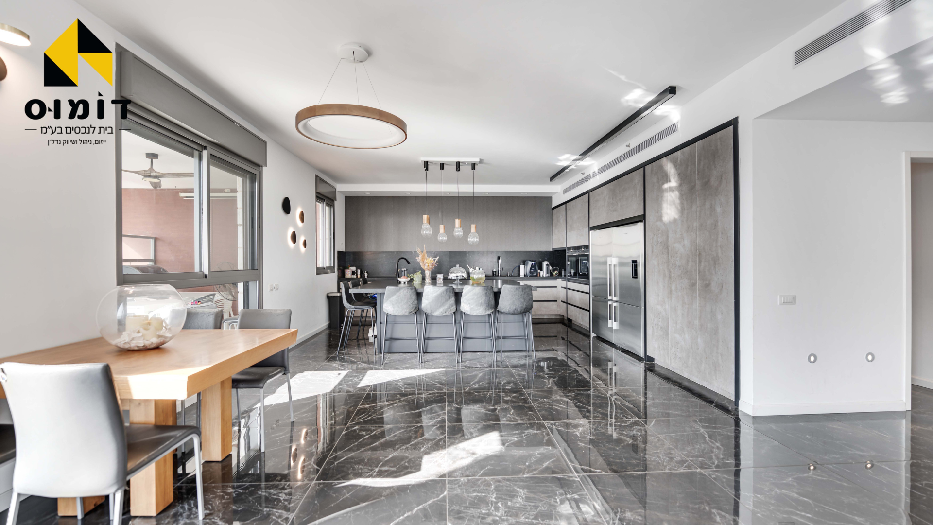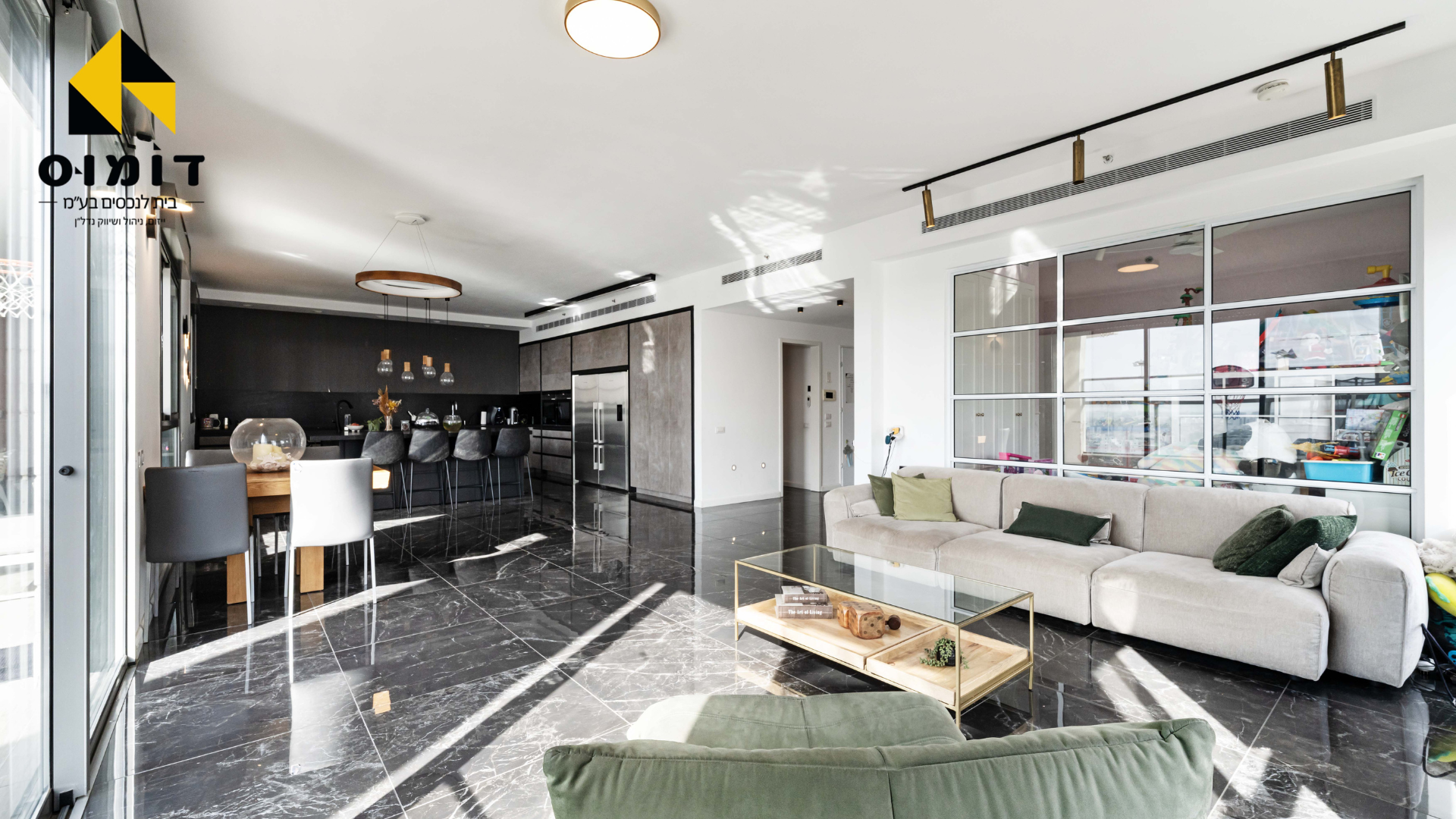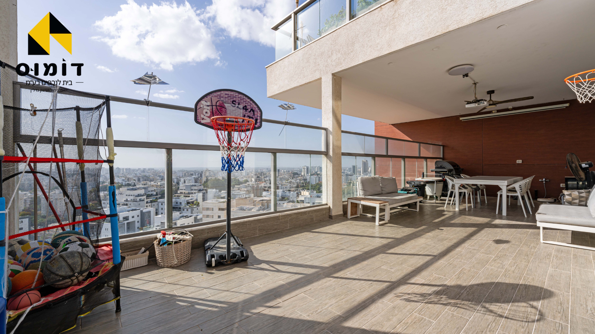 200 מ”ר במפלס אחד + 70 מ”ר מרפסות שמש