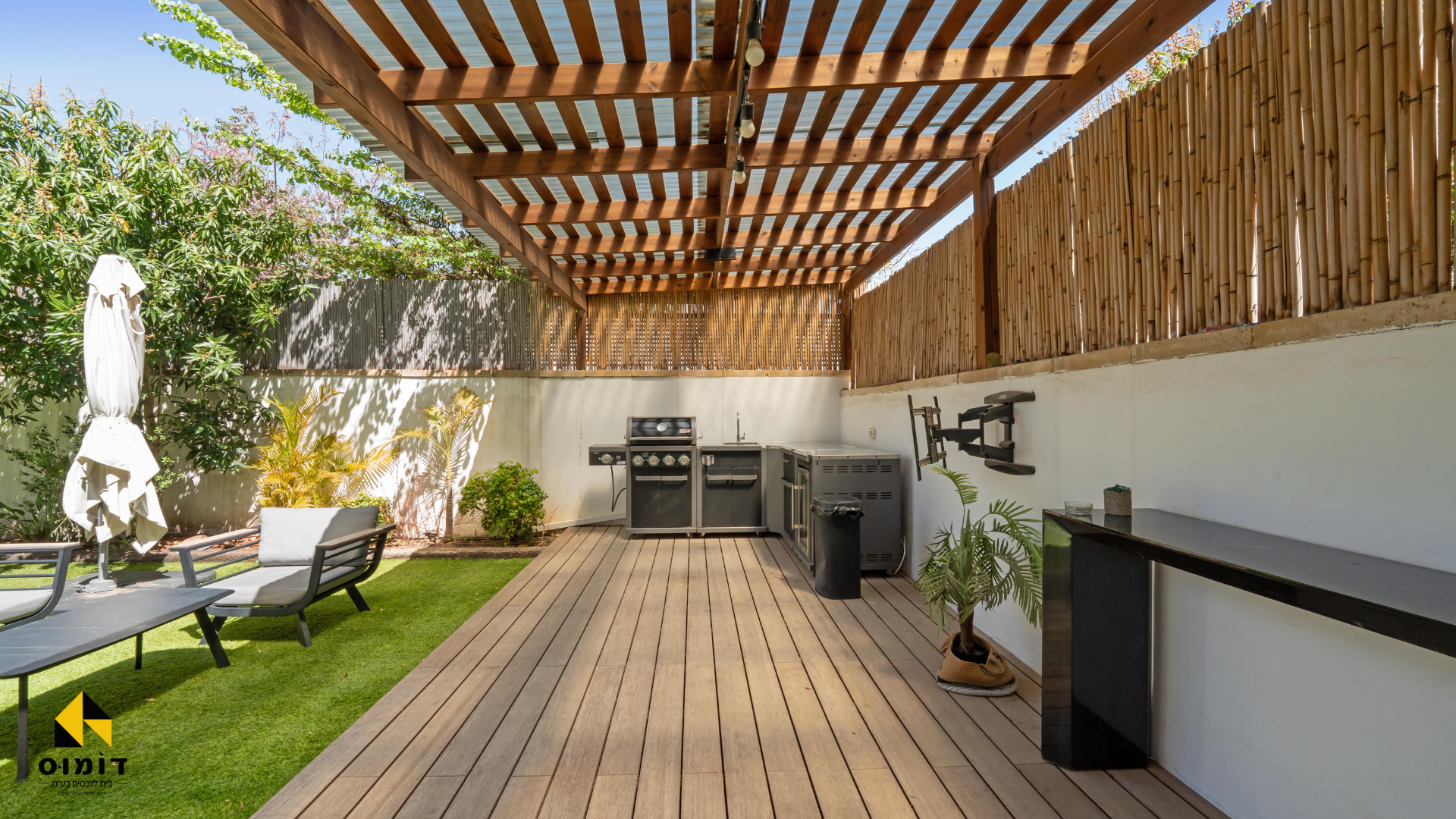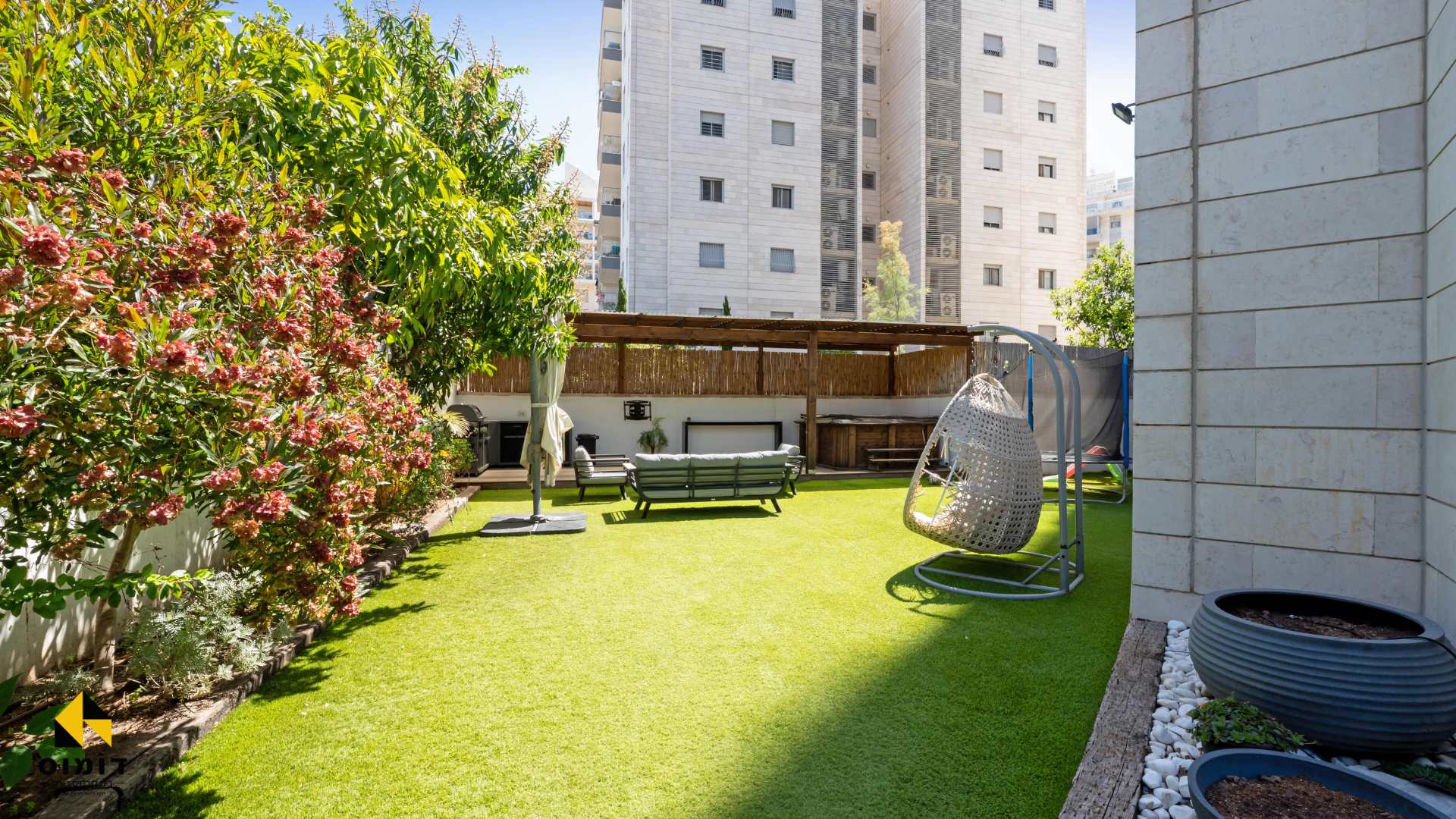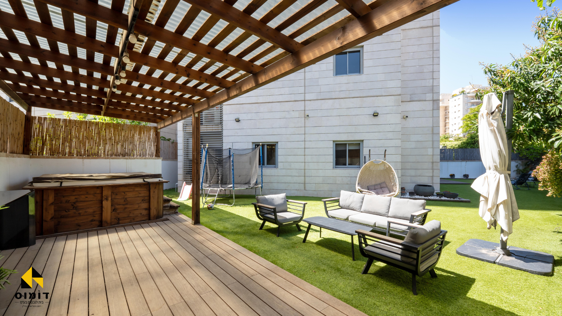 גינה משודרגת הרבה גינון, פרגולה,דק, ג’קוזי
